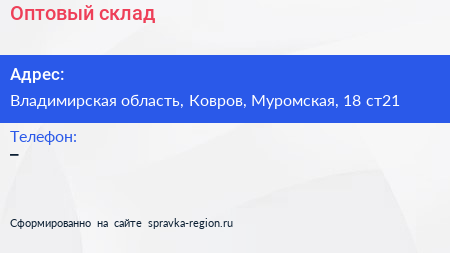 Оптовый склад по адресу Владимирская область, Ковров, Муромская, 18 ст21 в дальнейшем Организация, размещена в следующих категориях:
