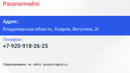 Paranormalno по адресу Владимирская область, Ковров, Ватутина, 2г в дальнейшем Организация, размещена в следующих категориях: