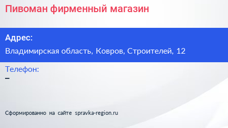 Пивоман, фирменный магазин по адресу Владимирская область, Ковров, Строителей, 12 в дальнейшем Организация, размещена в следующих категориях: