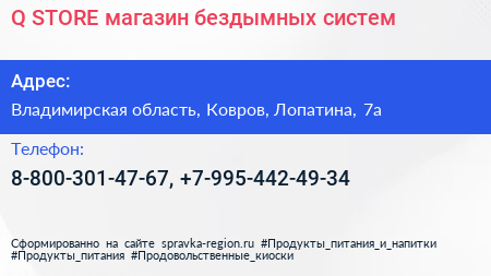 Q STORE, магазин бездымных систем по адресу Владимирская область, Ковров, Лопатина, 7а в дальнейшем Организация, размещена в следующих категориях: