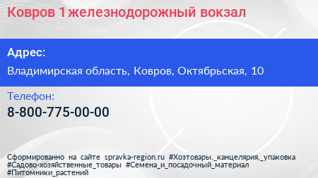 Ковров-1, железнодорожный вокзал по адресу Владимирская область, Ковров, Октябрьская, 10 в дальнейшем Организация, размещена в следующих категориях: