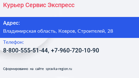 Курьер Сервис Экспресс по адресу Владимирская область, Ковров, Строителей, 28 в дальнейшем Организация, размещена в следующих категориях: