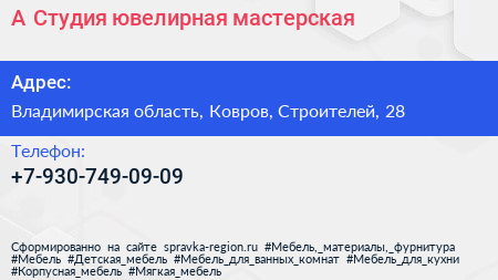 А Студия, ювелирная мастерская по адресу Владимирская область, Ковров, Строителей, 28 в дальнейшем Организация, размещена в следующих категориях: