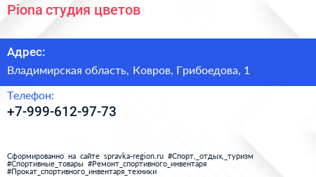 Piona, студия цветов по адресу Владимирская область, Ковров, Грибоедова, 1 в дальнейшем Организация, размещена в следующих категориях: