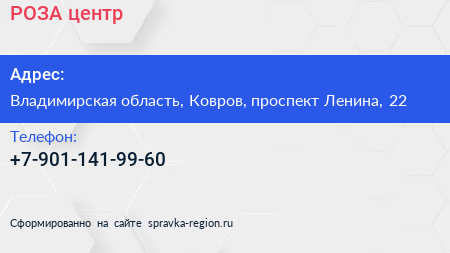 РОЗА, центр по адресу Владимирская область, Ковров, проспект Ленина, 22 в дальнейшем Организация, размещена в следующих категориях: