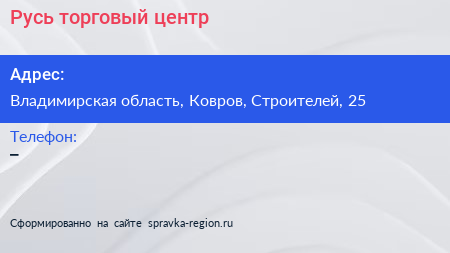 Русь, торговый центр по адресу Владимирская область, Ковров, Строителей, 25 в дальнейшем Организация, размещена в следующих категориях: