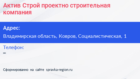 Актив-Строй, проектно-строительная компания по адресу Владимирская область, Ковров, Социалистическая, 1 в дальнейшем Организация, размещена в следующих категориях: