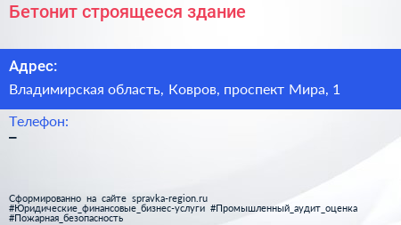 Бетонит, строящееся здание по адресу Владимирская область, Ковров, проспект Мира, 1 в дальнейшем Организация, размещена в следующих категориях: