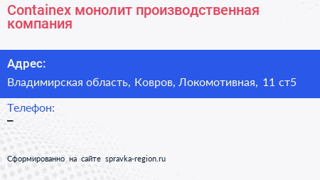 Containex монолит, производственная компания по адресу Владимирская область, Ковров, Локомотивная, 11 ст5 в дальнейшем Организация, размещена в следующих категориях: