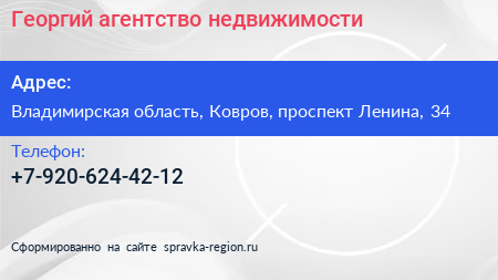 Георгий, агентство недвижимости по адресу Владимирская область, Ковров, проспект Ленина, 34 в дальнейшем Организация, размещена в следующих категориях:
