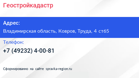 Геостройкадастр по адресу Владимирская область, Ковров, Труда, 4 ст65 в дальнейшем Организация, размещена в следующих категориях: