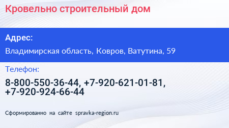 Кровельно-строительный дом по адресу Владимирская область, Ковров, Ватутина, 59 в дальнейшем Организация, размещена в следующих категориях: