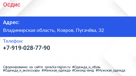 Осдис по адресу Владимирская область, Ковров, Пугачёва, 32 в дальнейшем Организация, размещена в следующих категориях: