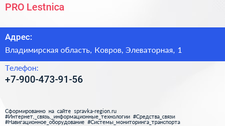 PRO-Lestnica по адресу Владимирская область, Ковров, Элеваторная, 1 в дальнейшем Организация, размещена в следующих категориях: