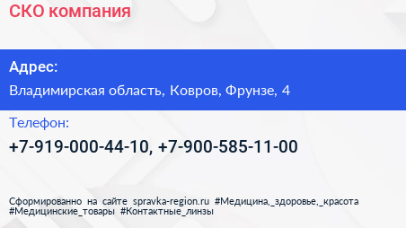 СКО, компания по адресу Владимирская область, Ковров, Фрунзе, 4 в дальнейшем Организация, размещена в следующих категориях: