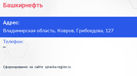 Башкирнефть по адресу Владимирская область, Ковров, Грибоедова, 127 в дальнейшем Организация, размещена в следующих категориях: