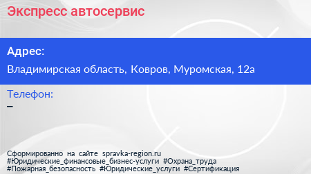 Экспресс, автосервис по адресу Владимирская область, Ковров, Муромская, 12а в дальнейшем Организация, размещена в следующих категориях: