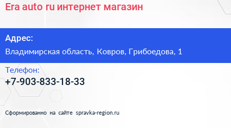 Era-auto.ru, интернет-магазин по адресу Владимирская область, Ковров, Грибоедова, 1 в дальнейшем Организация, размещена в следующих категориях:
