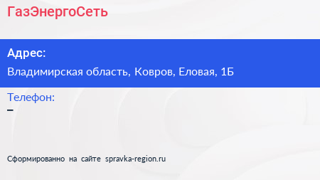 ГазЭнергоСеть по адресу Владимирская область, Ковров, Еловая, 1Б в дальнейшем Организация, размещена в следующих категориях: