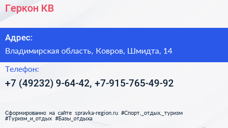 Геркон КВ по адресу Владимирская область, Ковров, Шмидта, 14 в дальнейшем Организация, размещена в следующих категориях: