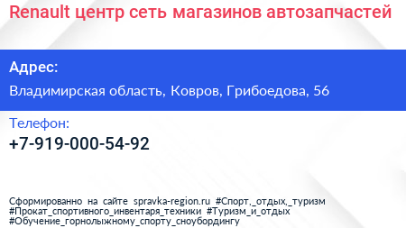 Renault-центр, сеть магазинов автозапчастей по адресу Владимирская область, Ковров, Грибоедова, 56 в дальнейшем Организация, размещена в следующих категориях: