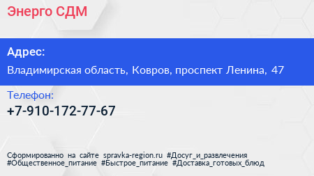 Энерго-СДМ по адресу Владимирская область, Ковров, проспект Ленина, 47 в дальнейшем Организация, размещена в следующих категориях: