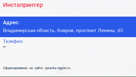 Инстапринтер по адресу Владимирская область, Ковров, проспект Ленина, 65 в дальнейшем Организация, размещена в следующих категориях: