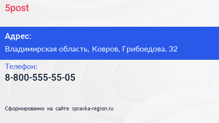 5post по адресу Владимирская область, Ковров, Грибоедова, 32 в дальнейшем Организация, размещена в следующих категориях: