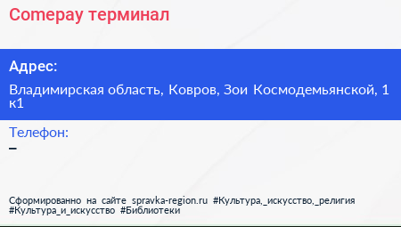 Comepay, терминал по адресу Владимирская область, Ковров, Зои Космодемьянской, 1 к1 в дальнейшем Организация, размещена в следующих категориях:
