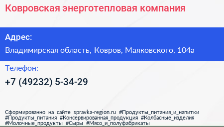 Ковровская энерготепловая компания по адресу Владимирская область, Ковров, Маяковского, 104а в дальнейшем Организация, размещена в следующих категориях: