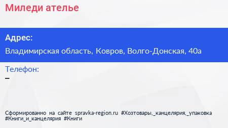 Миледи, ателье по адресу Владимирская область, Ковров, Волго-Донская, 40а в дальнейшем Организация, размещена в следующих категориях: