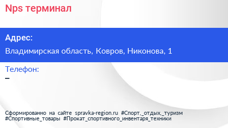 Nps, терминал по адресу Владимирская область, Ковров, Никонова, 1 в дальнейшем Организация, размещена в следующих категориях:
