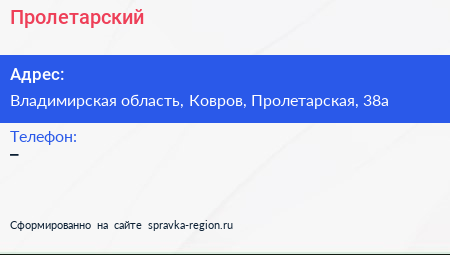 Пролетарский по адресу Владимирская область, Ковров, Пролетарская, 38а в дальнейшем Организация, размещена в следующих категориях: