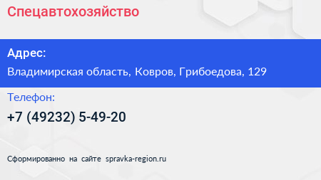 Спецавтохозяйство по адресу Владимирская область, Ковров, Грибоедова, 129 в дальнейшем Организация, размещена в следующих категориях: