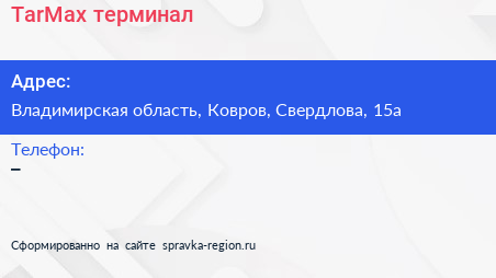 TarMax, терминал по адресу Владимирская область, Ковров, Свердлова, 15а в дальнейшем Организация, размещена в следующих категориях:
