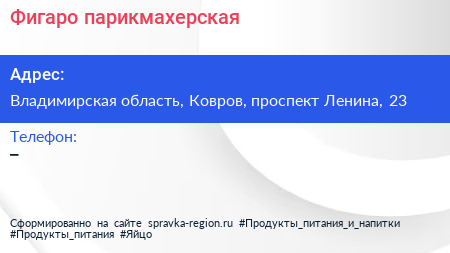 Фигаро, парикмахерская по адресу Владимирская область, Ковров, проспект Ленина, 23 в дальнейшем Организация, размещена в следующих категориях: