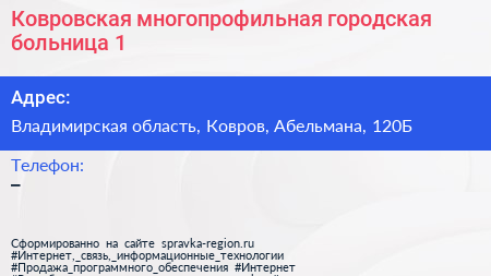 Ковровская многопрофильная городская больница №1 по адресу Владимирская область, Ковров, Абельмана, 120Б в дальнейшем Организация, размещена в следующих категориях: