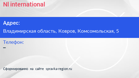 Nl international по адресу Владимирская область, Ковров, Комсомольская, 5 в дальнейшем Организация, размещена в следующих категориях: