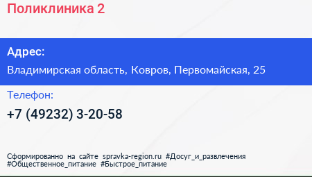 Поликлиника №2 по адресу Владимирская область, Ковров, Первомайская, 25 в дальнейшем Организация, размещена в следующих категориях: