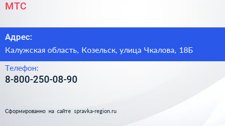 МТС по адресу Калужская область, Козельск, улица Чкалова, 18Б в дальнейшем Организация, размещена в следующих категориях: