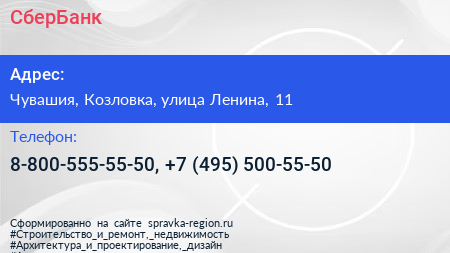 СберБанк по адресу Чувашия, Козловка, улица Ленина, 11 в дальнейшем Организация, размещена в следующих категориях:
