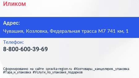 Иликом по адресу Чувашия, Козловка, Федеральная трасса М7 741 км, 1 в дальнейшем Организация, размещена в следующих категориях: