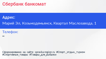 Сбербанк, банкомат по адресу Марий Эл, Козьмодемьянск, Квартал Маслозавода, 1 в дальнейшем Организация, размещена в следующих категориях: