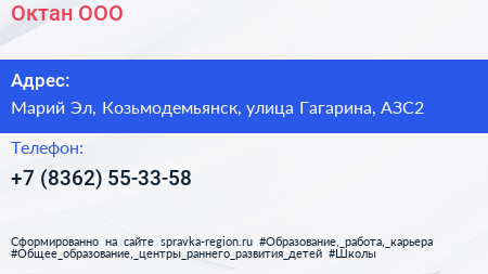 Октан , ООО по адресу Марий Эл, Козьмодемьянск, улица Гагарина, АЗС2 в дальнейшем Организация, размещена в следующих категориях: