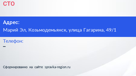 СТО по адресу Марий Эл, Козьмодемьянск, улица Гагарина, 49/1 в дальнейшем Организация, размещена в следующих категориях: