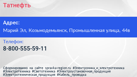 Татнефть по адресу Марий Эл, Козьмодемьянск, Промышленная улица, 44в в дальнейшем Организация, размещена в следующих категориях: