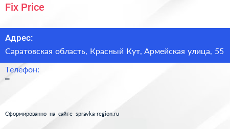 Fix Price по адресу Саратовская область, Красный Кут, Армейская улица, 55 в дальнейшем Организация, размещена в следующих категориях: