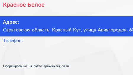 Красное & Белое по адресу Саратовская область, Красный Кут, улица Авиагородок, 60 в дальнейшем Организация, размещена в следующих категориях: