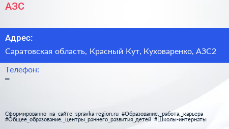 АЗС по адресу Саратовская область, Красный Кут, Куховаренко, АЗС2 в дальнейшем Организация, размещена в следующих категориях: