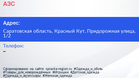 АЗС по адресу Саратовская область, Красный Кут, Придорожная улица, 1/2 в дальнейшем Организация, размещена в следующих категориях: